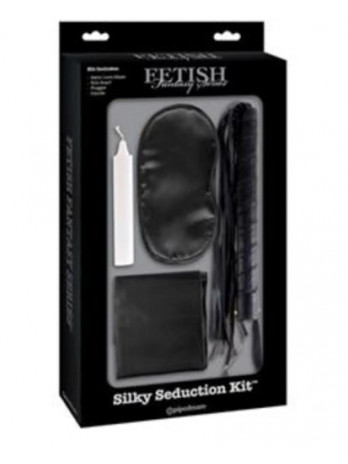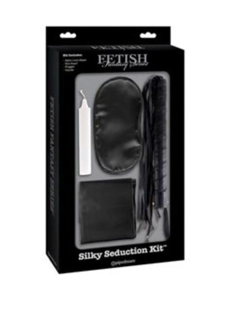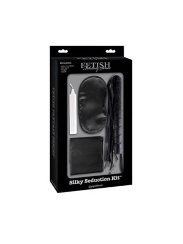 Transforme o seu quarto num playground erótico com este incrível kit para iniciantes. Tudo o que precisa para explorar as suas fantasias fetichistas está incluído neste magnifico conjunto! As possibilidades são infinitas… e a diversão também! O kit inclui: venda de cetim, lenço de seda, chicote e vela.