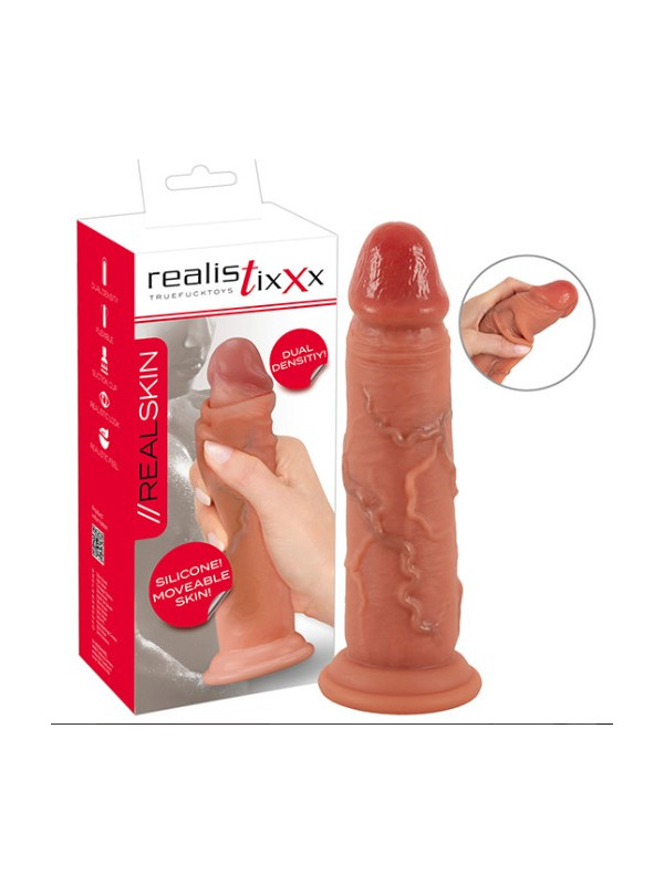 Dildo com camada exterior móvel (pele) muito realístico. Aparência.
