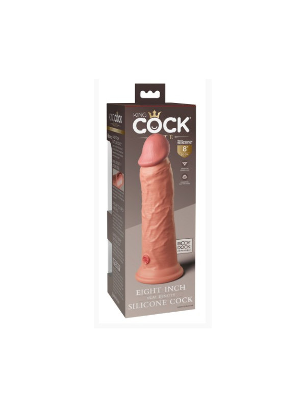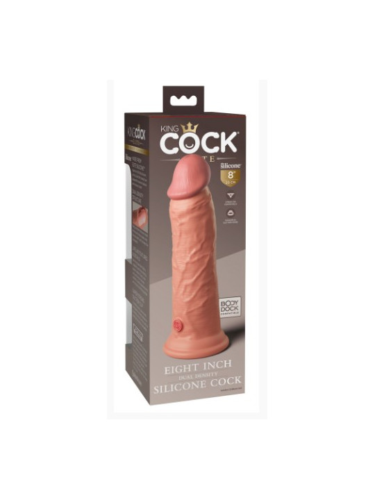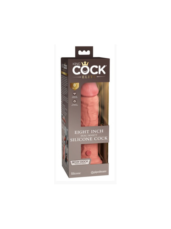 Lindo Dildo 8 "Dual Density Silicone Cock de King Cock Elite em pênis hiper-realista olhar feito de material de silicone de dupla densidade que se sente como pele real. O vibrador em si possui um eixo firme, porém flexível, que acompanha qualquer posição.