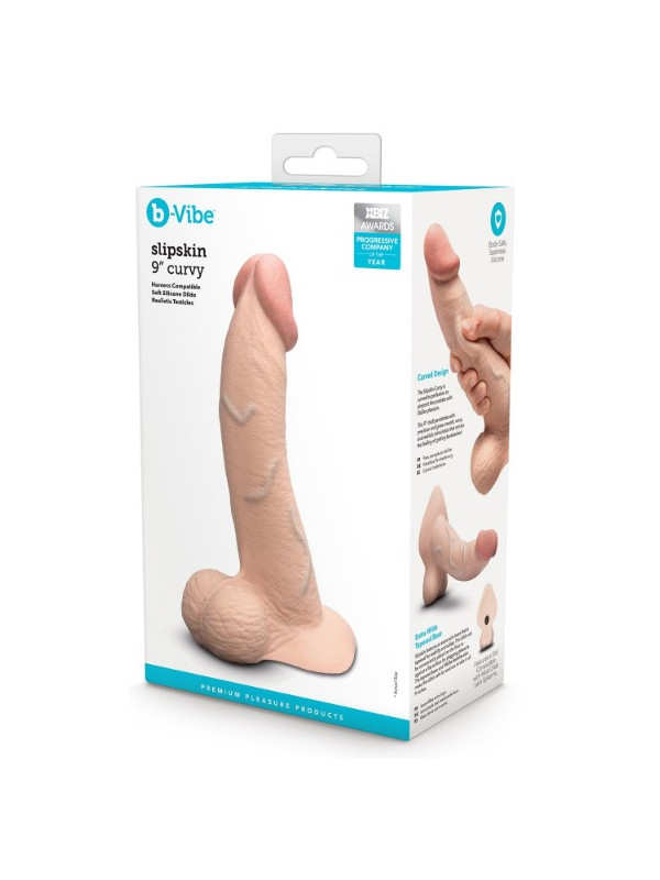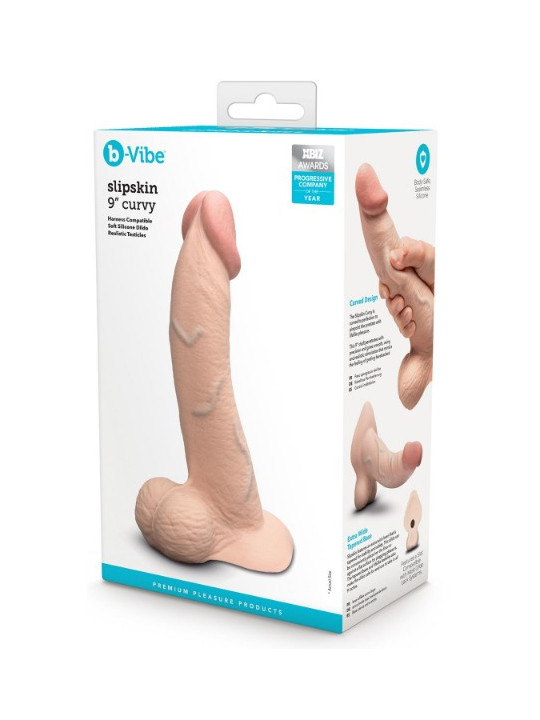 Com todas as emoções de um pênis, a linha de consolos realistas da b-Vibe é feita com silicone de alta qualidade e seguro para o corpo, possui texturas ultra realistas, autênticas e realistas, se encaixa com segurança na maioria dos arneses e é tão versátil quanto seu usuário. O Slipskin Curvy é curvado com perfeição para identificar o ponto p/ponto g com prazer realista. Este eixo penetra com precisão e proporciona estimulação suave, venosa e realista.